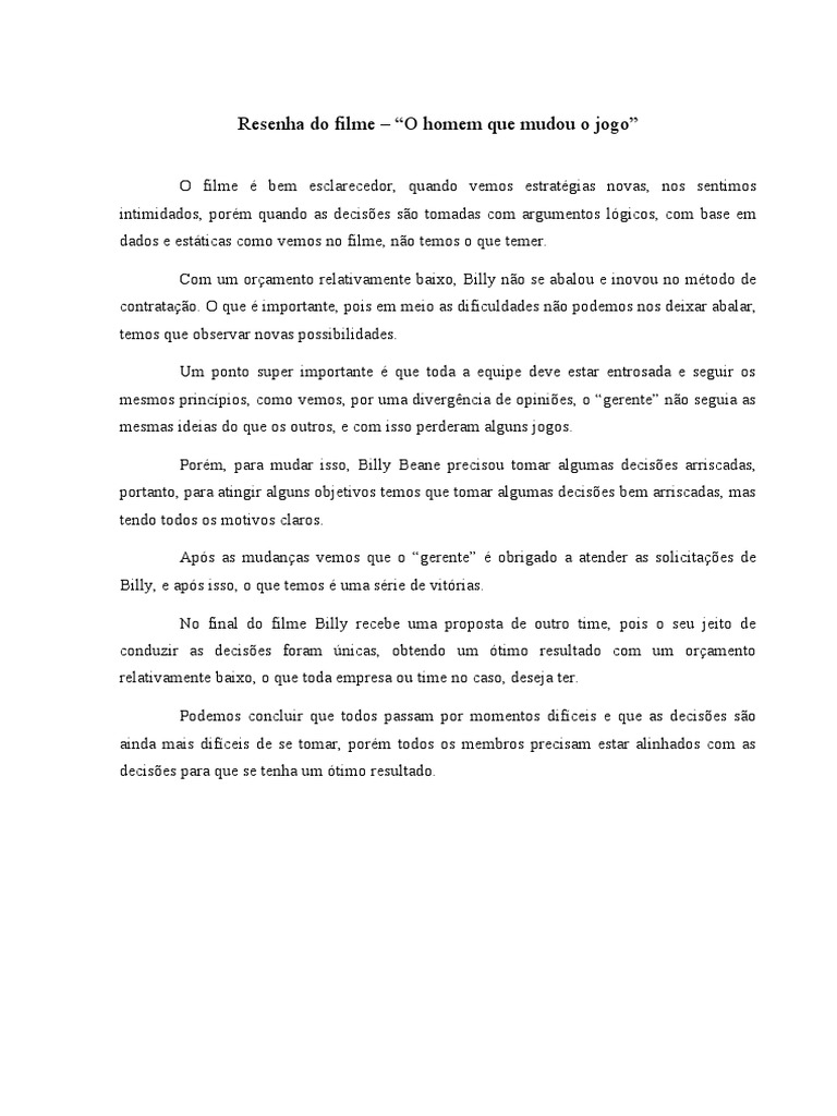 Resenha O Homem Que Mudou o Jogo PDF