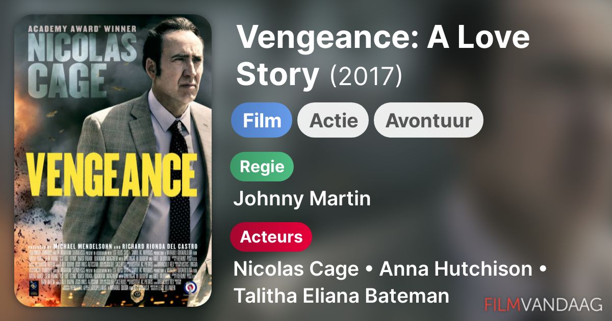 Summaries. One vigilante policeman comes to the aid of a single mother seeking to bring her rapists to justice. Walking home with her 12-year-old daughter after midnight on the Fourth of July, Teena crosses paths with some local losers who brutally gang-rape her in front of her daughter. Bethie is able to identify the rapists, but when they.. Feb 2 Movie Review : Vengeance – A Love Story (2017) Benoit Lelievre. Movie Reviews. Nicolas Cagebecame a cult figurebefore anyone could notice over the last decades and not because he’s miraculously reappearing in big productions. His movies are becoming a thing again because they feature his mumbling, alcoholic (and seldom hilarious) self.